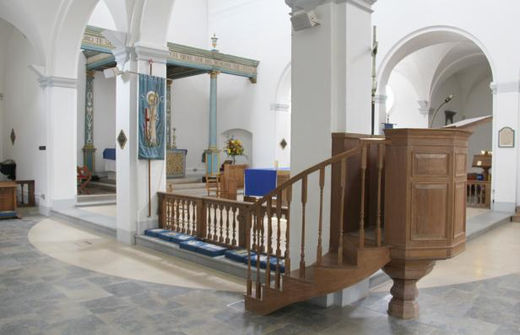Along the two flank walls to the nave, to reduce the reverberation in the main nave.